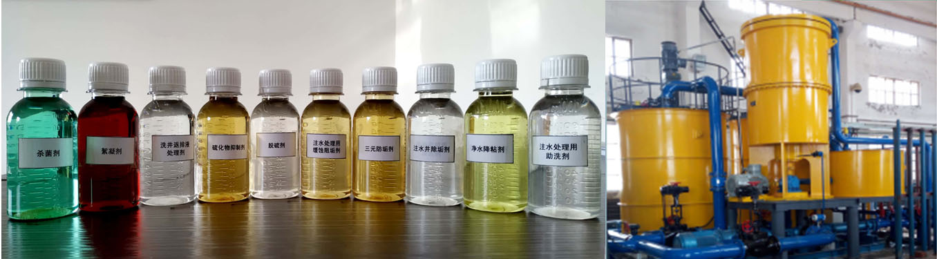 針對油田的實際情況,公司開發(fā)油田水處理助劑共10余種。產(chǎn)品主要包括:殺菌劑系列產(chǎn)品三項、絮凝劑、洗井返排液處理劑、硫化物抑制劑、脫硫劑、注水處理用緩蝕阻垢劑、三元防垢劑、除垢劑、凈水降粘劑、注水處理用助洗劑等產(chǎn)品,目前廣泛應(yīng)用在大慶油田。