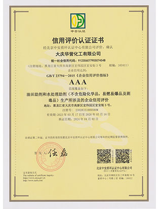 大慶華營化工有限公司成立于2006年7月10日,注冊資金3300萬元,公司類型為有限責任公司。位于大慶高新技術(shù)產(chǎn)業(yè)開發(fā)區(qū)宏偉園區(qū),是一家集油田助劑產(chǎn)品的研發(fā)、生產(chǎn)、銷售和技術(shù)服務(wù)為一體的現(xiàn)代化高新技術(shù)企業(yè)。公司注重科技創(chuàng)新,公司擁有18項自主知識產(chǎn)權(quán)。企業(yè)承擔過國家火炬計劃重點項目、國家科技型中小企業(yè)創(chuàng)新項目等,2011年被科技部火炬高新技術(shù)產(chǎn)業(yè)開發(fā)中心評為國家火炬計劃重點高新技術(shù)企業(yè)。公司十余種產(chǎn)品獲得中國石油天然氣集團公司產(chǎn)品質(zhì)量認可證書,其中粘穩(wěn)型驅(qū)油劑獲國家火炬計劃重點項目證書。公司憑借多年對大慶油田及周邊油田地質(zhì)情況的研究,可針對各油田地層特點調(diào)整產(chǎn)品的配方,更好地發(fā)揮各類油田助劑的性能。